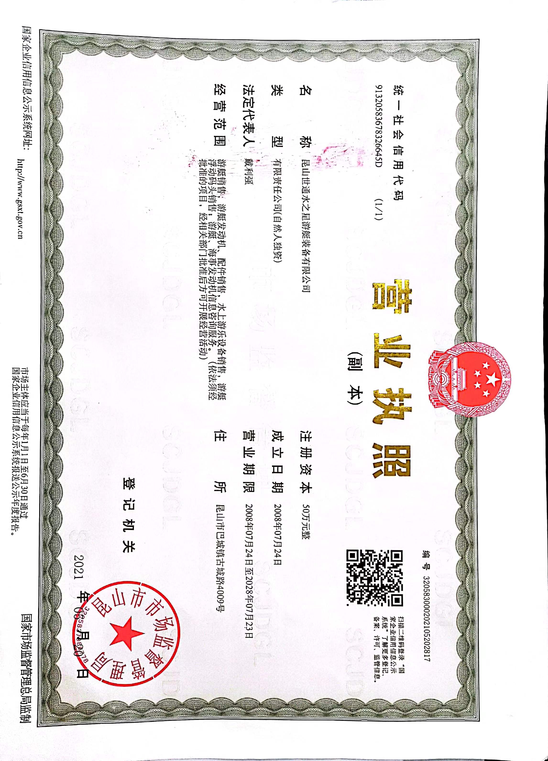经营机构: 昆山世通水之星游艇装备有限公司